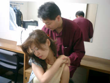お着替え後、リハ室で、首にタオルを巻くのは声楽家本番前の証拠 |