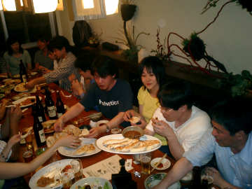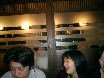 | 乾杯の声があまりに大きかったので、となりの子供が一生懸命のぞきます |